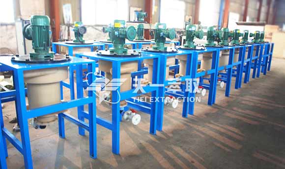 After extraction, the metal elements are transferred into the extractant, followed by a stripping process using a stripping agent. Centrifugal extractor is also used in this stage to separate the extractant from the metal elements, thereby obtaining the desired metals while allowing the extractant to be regenerated and reused.