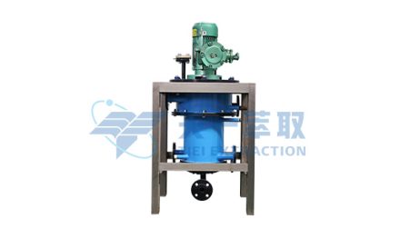 During the operation, high concentration 2-naphthol wastewater and HLE-type extractant are injected into the centrifugal extractor in a certain proportion. With the help of the rotation of the drum, the two phases are quickly mixed and dispersed through the impeller to complete the mixed mass transfer process. The mixed liquid enters the drum under the action of the vortex disk. Under the action of centrifugal force, the two-phase liquid is quickly separated and discharged from the body through different outlets to complete the two-phase separation process. After the first-stage extraction, the 2-naphthol wastewater changes from dark brown to light yellow, and the COD removal rate decreases significantly. After the second-stage extraction, the wastewater changes from light yellow to colorless and transparent, and the COD removal rate is greater than 99%. The device operates stably and the organic matter in the wastewater is effectively removed.