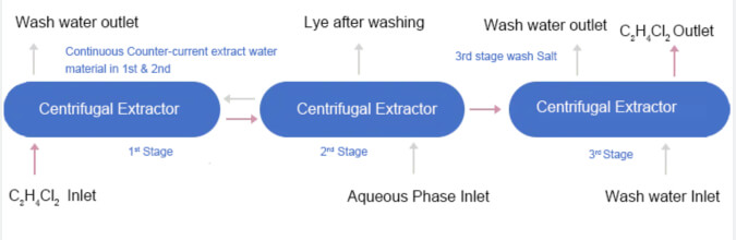 Usually, you would have multiple centrifugal extractors in series for extraction, scrubbing and stripping(and perhaps others). The number of stages needed in each section of the process would depend on the process design requirements(necessary extraction factor).The process design is based on testing data,to get real operating data on a laboratory machine, and be able to use that data is very helpful. You have to vet your process, and know what challenges you're gonna have in your design, and what conditions to expect. So the pilot plant is absolutely the first step.